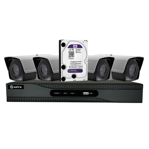 Codice: VH-SF-KIT17Marchio: DIERRETVCC. Articolo: VH-SF-KIT17. Safire - Kit PoC CCTV 4 telecamere bullet Lente Varifocale 1080p - Composto da: 1 x SF-HTVR6104AP-HEVC 4 CH H.265+/H.265 1080p - 1 x HD1TB Disco Duro 1TB speciale per videovigilanza Wester Digital WD10PURX - 4 x SF-SF-CV788VP-FTVI Telecamera bullet ECO 1080P 2.8~12 mm IR 40m IP66 - Power Over Coaxial (PoC), non necessita di alimentazione aggiuntiva