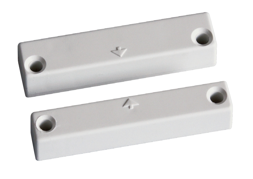 Codice: CS405-MMarchio: COOPER. Articolo: 405-M. Contatto magnetico a giorno uscita NC con magnete vicino connessione a 2 morsetti. GAP 11mm/15mm. Colore bianco. Grado di protezione IP40. Temperatura di funzionamento: -25°C / +70°C. Dimens. 60x13.5x13- Magnete 60x11x13