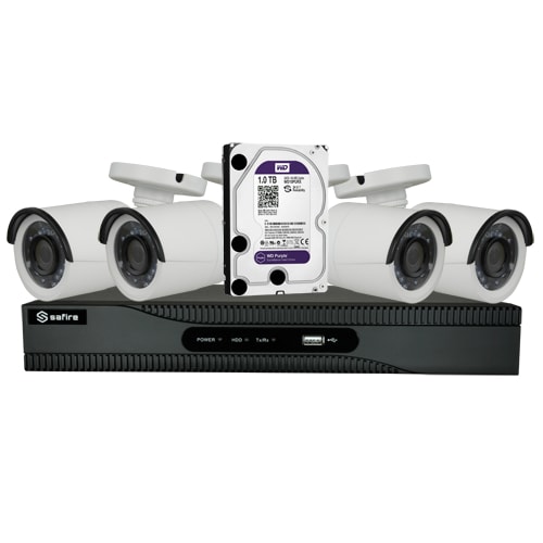 Codice: VH-SF-KIT11Marchio: DIERRETVCC. Articolo: VH-SF-KIT11. Safire - Kit CCTV 4 Camere Compatte Lente Fissa 1080p - Composto da: 1 x SF-HTVR6104A-HEVC 4 CH H.265+/H.265 1080p - 1 x HD1TB Disco Duro 1TB speciale per videovigilanza Wester Digital WD10PURX - 4 x SF-CV029IB-F4N1 Telecamera bullet ECO 1080P 3.6 mm IR 20m IP66
