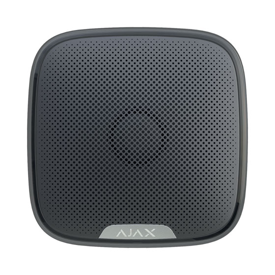 Codice: AJSSNMarchio: AJAX. Articolo: STREETSIRENN. Sirena da esterno senza fili. Potenza sonora regolabile tra 85 e 113 dB, colore nero.PRESTAZIONIAllarme sonoro e luminoso con livello sonoro personalizzabile fra 85 e 113 dB. In spazi aperti mantiene la comunicazione con il Hub Ajax fino alla distanza di 2.000 metriCARATTERISTICHE TECNICHEColore: NeroTipo di dispositivo: senza filiUtilizzo: in interno/in esternoTipo di allarme: luminoso e sonoroVolume allarme sonoro: regolabile 85-113 dB alla distanza di 1 metroFrequenza di funzionamento del cicalino piezo: 3.5±0.5 kHzAllarme luminoso: LED rossoIndicazione stato di inserimento/disinserimento/inserito: SiAlimentazione: dalla batteria integrata / o da alimentazione esterna 12Vc.c.Tipo di batteria: 4 x batteria CR123A, 3VIndicatore di btteria: SiDurata della batteria: fino a 5 anniAlimentazione esterna: 12Vc.c. ±20%Corrente a riposo: 70µA (quando viene interrogata ogni 35 secondi)Corrente in allarme max.: 1.45 A (volume max.)Consumo di corrente max.: dalle batterie 4.35 W, da sorgente esterna 12Vc.c. 13.5 WProtezione antimanomissione: disponibileProtezione antistacco: accelerometroPotenza segnale radio: 25mWProtocollo di comunicazione Jeweller 868MHzDistanza max. fra sirena e Hub: fino a 2.000 metri (in area libera)Monitoraggio radio: Sincronizzazione con l’unità centrale ogni 12 – 300 secondi (personalizzabile)Tempo di attivazione allarme: meno di 1 secondoDurata allarme personalizzabile: da 3 secondi a 3 minutiGrado di protezione: IP54Temperatura di funzionamento: da -20°С a +50°СUmidità di funzionamento: fino a 95%Dimensioni: mm 200 x 200 x 51Peso: g 502