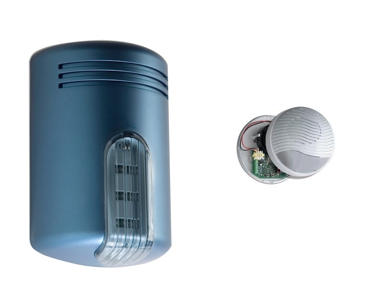 Codice: AS1KIT1CEFMarchio: VENITEM. Articolo: AS1KIT1CEF. Kit Doge AS1 Celeste calotta fumè + ATX2/S + batt. Sirena Doge wireless, AUTOPROTETTA, BIDIREZIONALE, SUPERVISIONATA, con sistema antischiuma brevettato a doppia tecnologia contro i falsi allarmi, sistema antishock contro gli urti violenti e lampeggiante a led, compatibile con qualsiasi tipo di centrale filare e/o wireless. Funziona in abbinamento con il dispositivo rice-trasmittente bidirezionale ATX2/S (completo di sirena interna), capace di comandare fino ad 8 sirene Doge wireless. La sezione trasmittente gestisce 4 ingressi di comando: 2 ingressi allarme e 2 ingressi ON/OFF, da collegare alla centrale di allarme. La sezione ricevente consiste in un display a 7 segmenti, 3 led di segnalazione e 3 uscite logiche e consente di ricevere e gestire tutte le informazioni provenienti dalle sirene memorizzate. Attraverso il display è possibile identificare quale sirena ha segnalato un problema, mentre i 3 led consentono di visualizzare il tipo di anomalia presente sulle sirene: allarme tamper, mancata supervisione e basso livello batterie. Sono disponibili 2 uscite elettriche a collettore aperto e 1 a relè che si attivano in concomitanza dell’anomalia segnalata. Alimentata da pacchetto batterie 7,5 V alcaline SIZE “D” incluso. L’autonomia prevista è di due anni circa calcolando 4 operazioni di stato giornaliere e un allarme mensile. Tramite il dip-switch è possibile impostare: 4 suoni, 4 temporizzazioni, escludere o abilitare il riporto sonoro ON/OFF, impostarne l’intensità acustica, escludere o abilitare la segnalazione ON/OFF impianto.